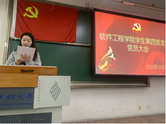 随后大会讨论了何宇琦等四位同志预备党员转正事项。何宇琦等四位同志汇报了自己在预备期间的表现,组织委员蒋艺介绍四位同志在预备期的教育考察情况,与会正式党员一致同意四位同志转为中共正式党员。何宇琦等四位同志依次对决议结果表明态度。