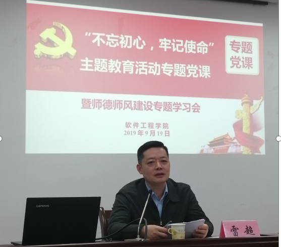 “不忘初心、牢记使命”主题教育专题党课暨师德师风建设专题学习会在双中心A502会议室举行,省纪委监委驻学校纪检监察组组长,学校党委副书记、纪委书记雷超同志出席会议并作专题报告,轮·盘(中国)官方网站