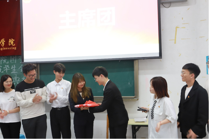 团委学生会工作更上一个台阶;张澄则通过分享两个小故事,讲述了工作中细节的重要性以及如何做到多想一点;齐文琴督促学生干部在搞好学生工作的同时也要兼顾学习,做到两手抓两手都要硬。在离别赠言和传家宝交接仪式中,上一届主席团和部长们将院旗、公章、相机以及装满资料的移动硬盘等宝贝传给了新一届主席团和部长们,一同传承下去的还有对工作认真负责的态度。最后,大家进行了合影和切蛋糕,在愉快的气氛中结束了本次典礼。