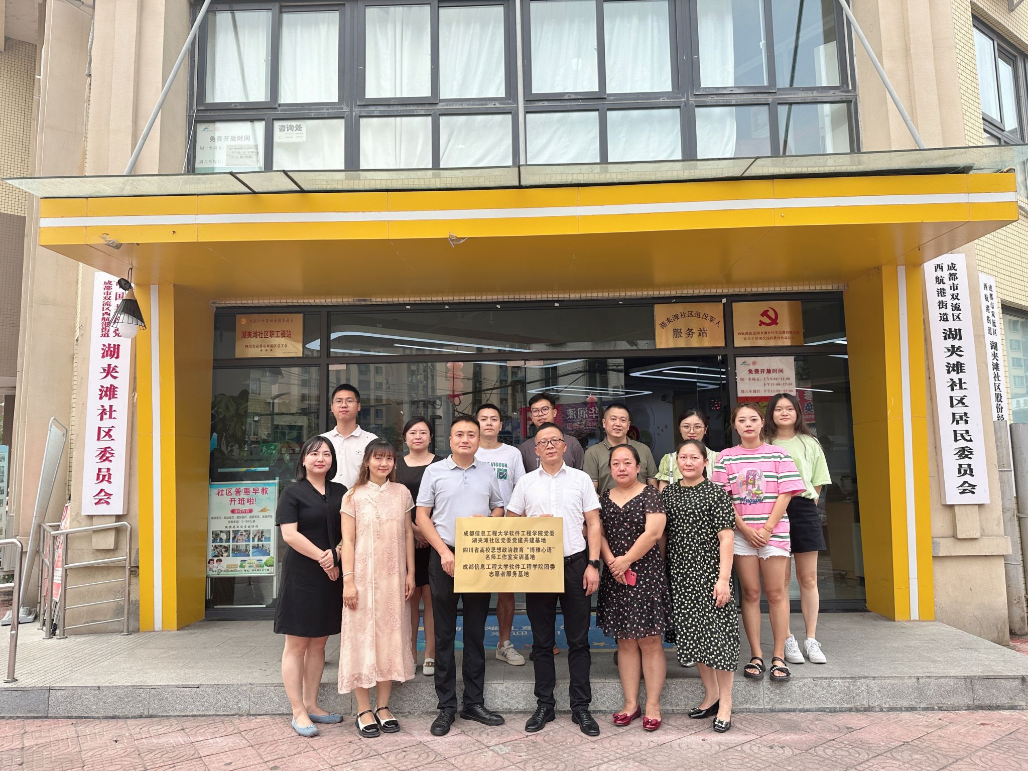 在双流区湖夹滩社区举行互联共建挂牌仪式,湖夹滩社区党委书记王华、社区两委成员、轮·盘(中国)官方网站