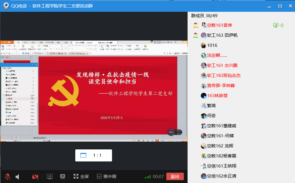 学生第二党支部于2020年5月29日举行了“学榜样,担使命”专题学习活动。
