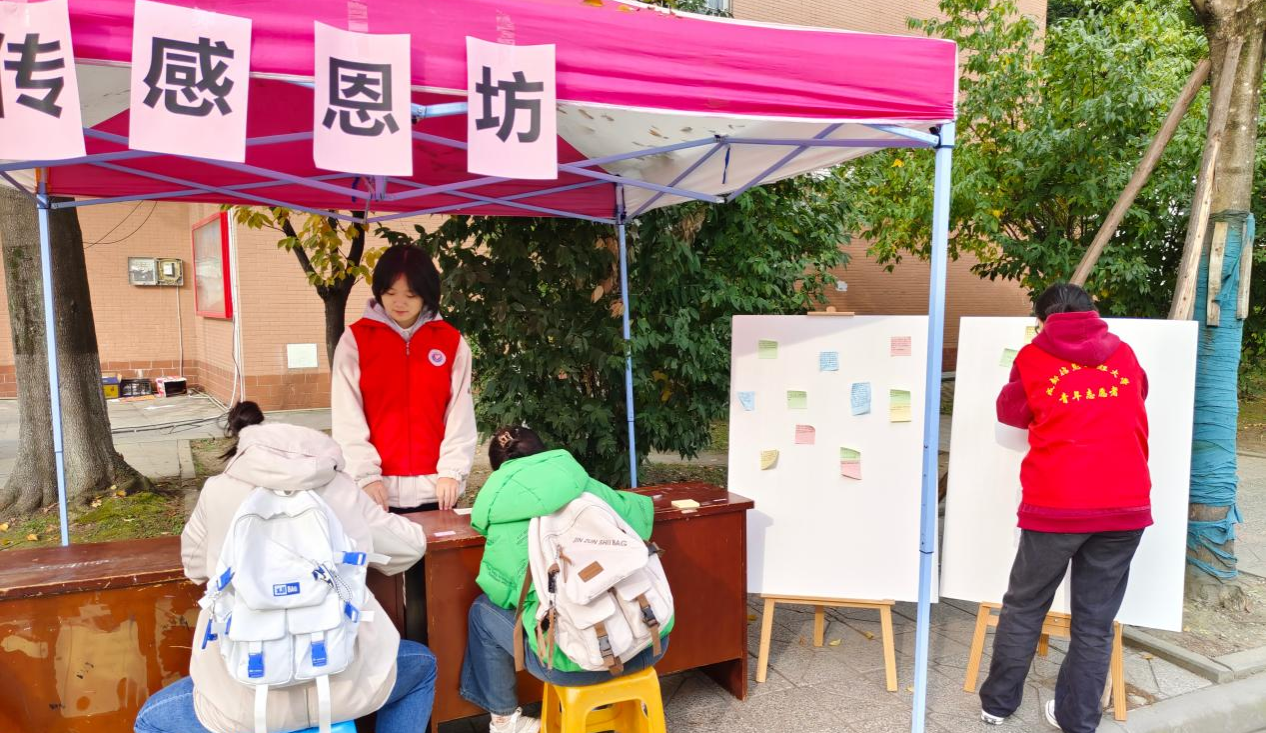 青志协在银杏大道开展:“言传感恩坊”活动。