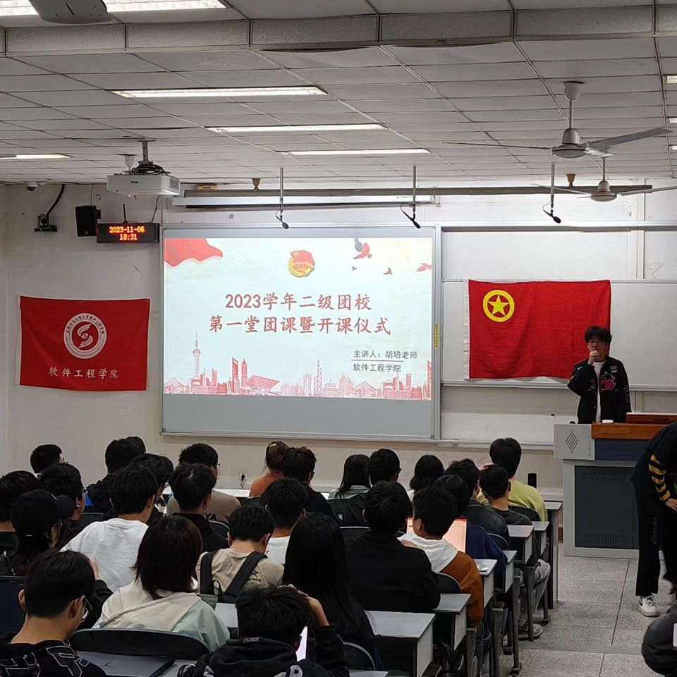 开课仪式在团歌声中拉开帷幕。胡培老师首先详细介绍了团章的总则、团章的内容学习解读、严格发展团员从严管理团员队伍等团章的基本知识,让大家进一步认识和了解中国共青团。接着讲述团员权利、团员义务、团的干部、团员发展等关于团章的内容,为大家介绍团组织的严格作风,教育引导团学干部要树立坚定信念,以积极的态度和饱满的热情开展团学工作。最后,胡培老师鼓励各级团学干部全面提升自身水平,加强团支部学风建设,树立标杆,全面提高自我思想水平、业务能力及综合素质。希望团学干部能在同学中充分发挥模范带头作用,以更好服务于广大师生。